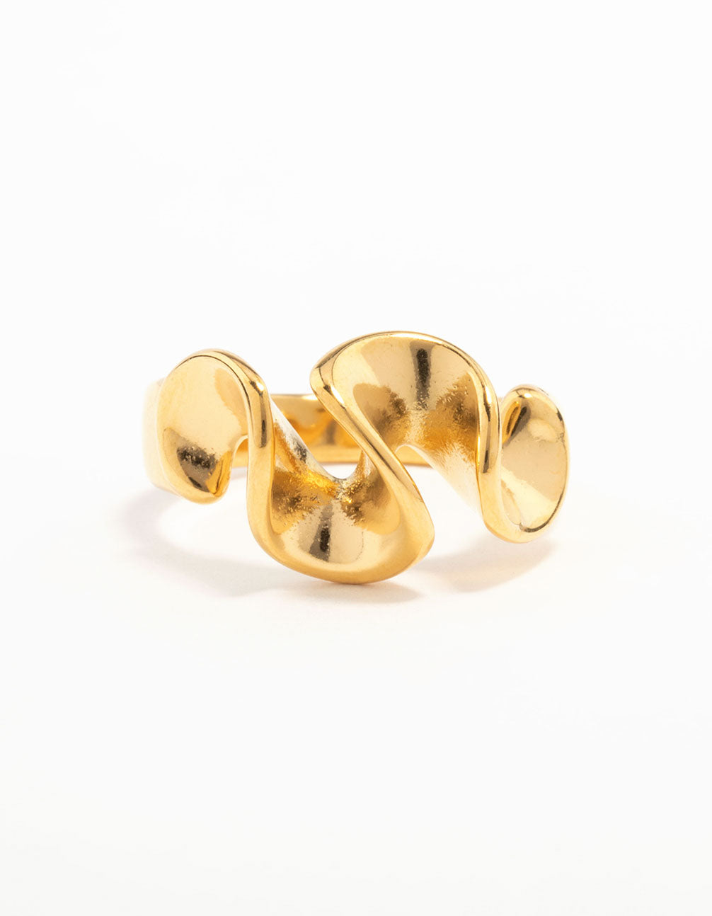 Waterproof Gold Plated Stainless Steel Layered Ribbon Ring