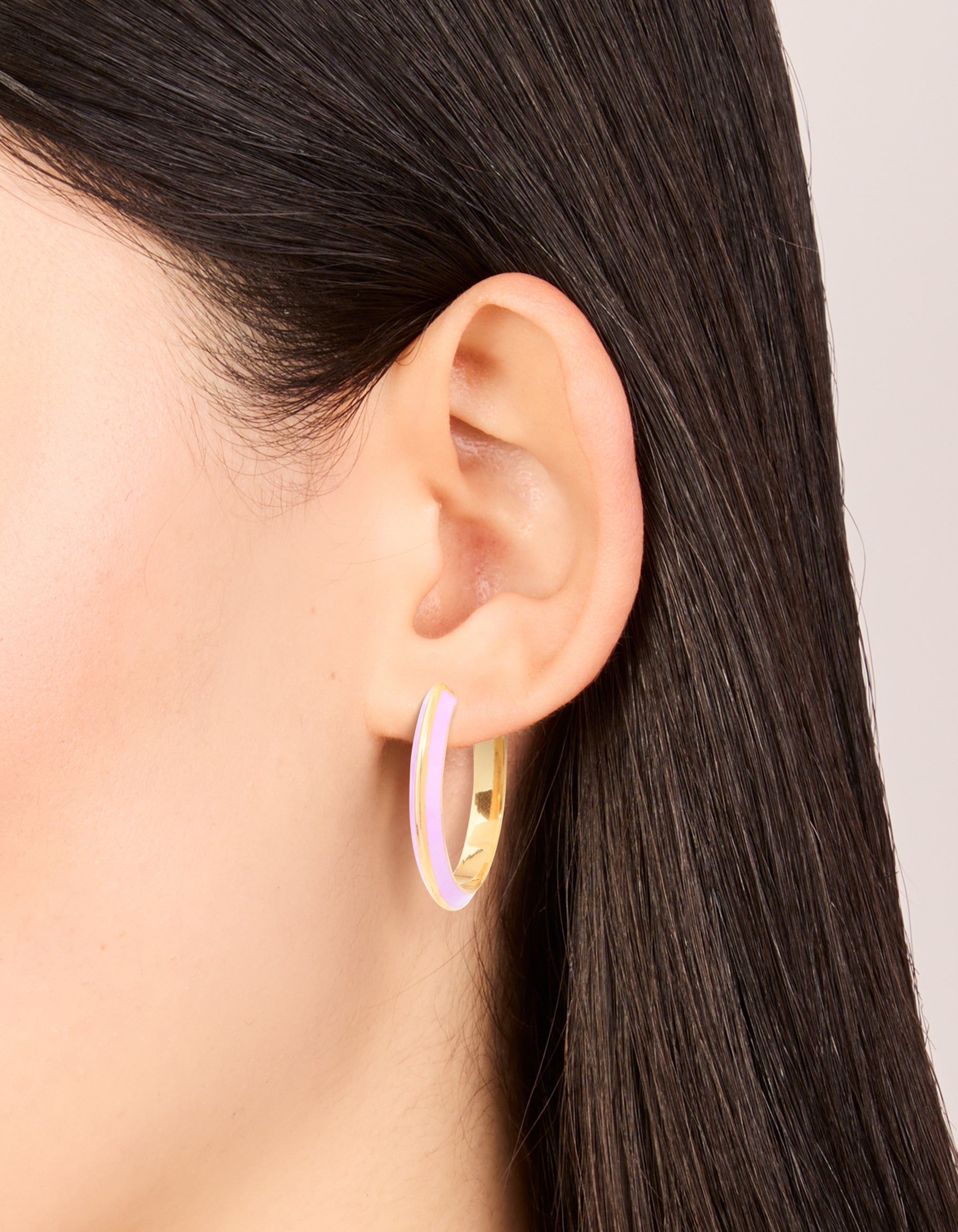 Waterproof Gold Plated Stainless Steel Lilac Enamel Hoop Earrings