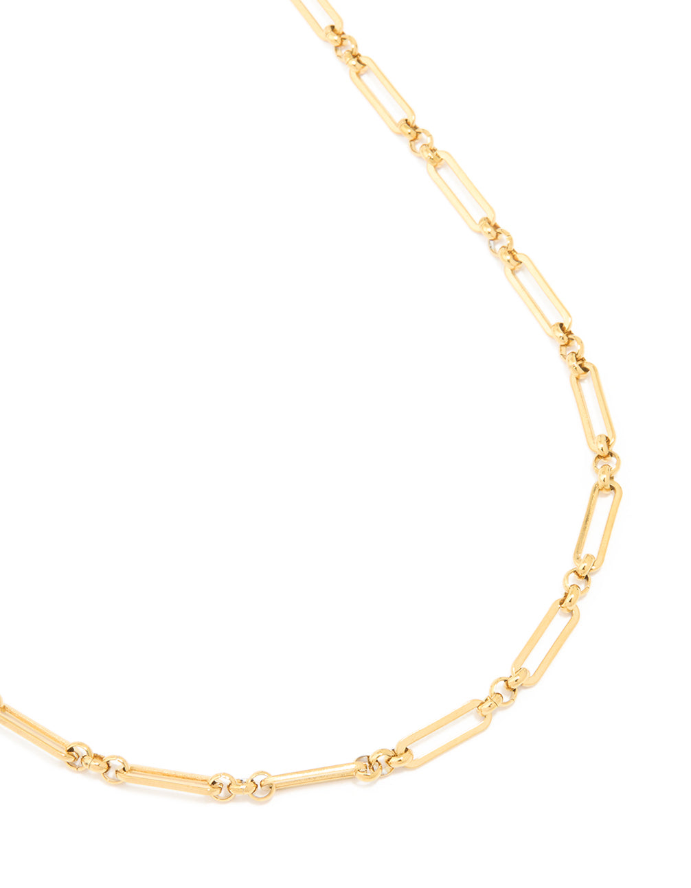 • Waterproof Gold Plated Stainless Steel Open Oval Link Necklace - link has visual effect only