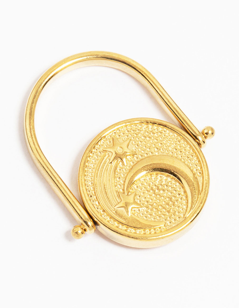 Add a touch of effortless style to your look with this Waterproof Gold Plated Stainless Steel Sun Coin Ring. This fashion ring features a bold sun coin design, making it a statement piece that's perfect for everyday wear or special occasions. Crafted from durable stainless steel with a luxurious gold plating, it's not just stylish—it's practical too! Sweat, swim, or shower without worry, thanks to its waterproof finish. Whether you're dressing up for a night out or keeping it casual with jeans and a tee, this signet ring adds a chic, polished vibe. Stack it with other rings for a stylish layered look or wear it solo as a standout accessory.
