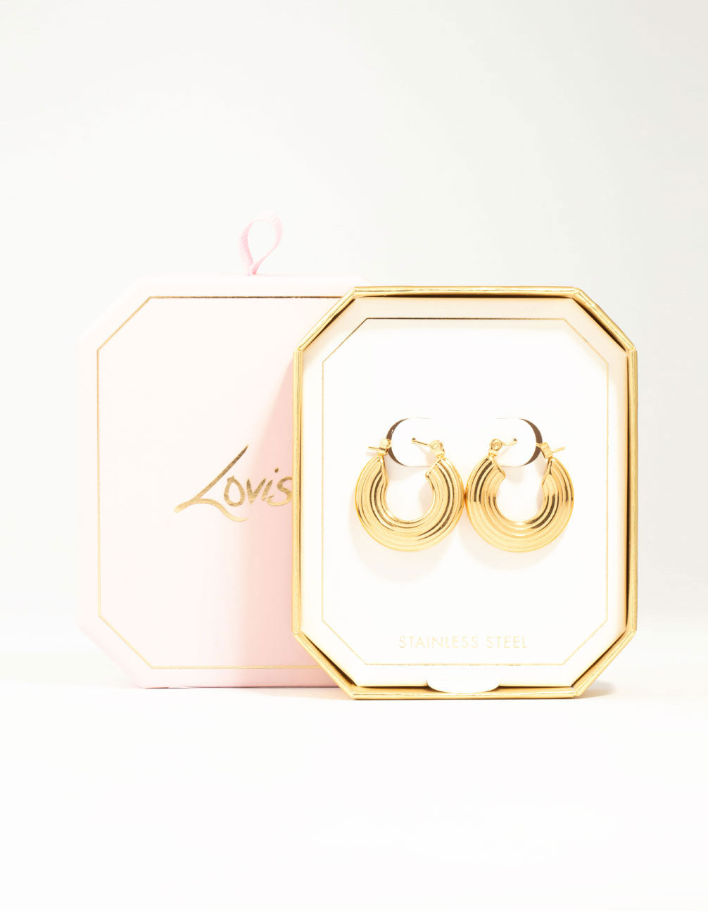 Waterproof Gold Plated Stainless Steel Wide Line Textured Hoop Earrings
