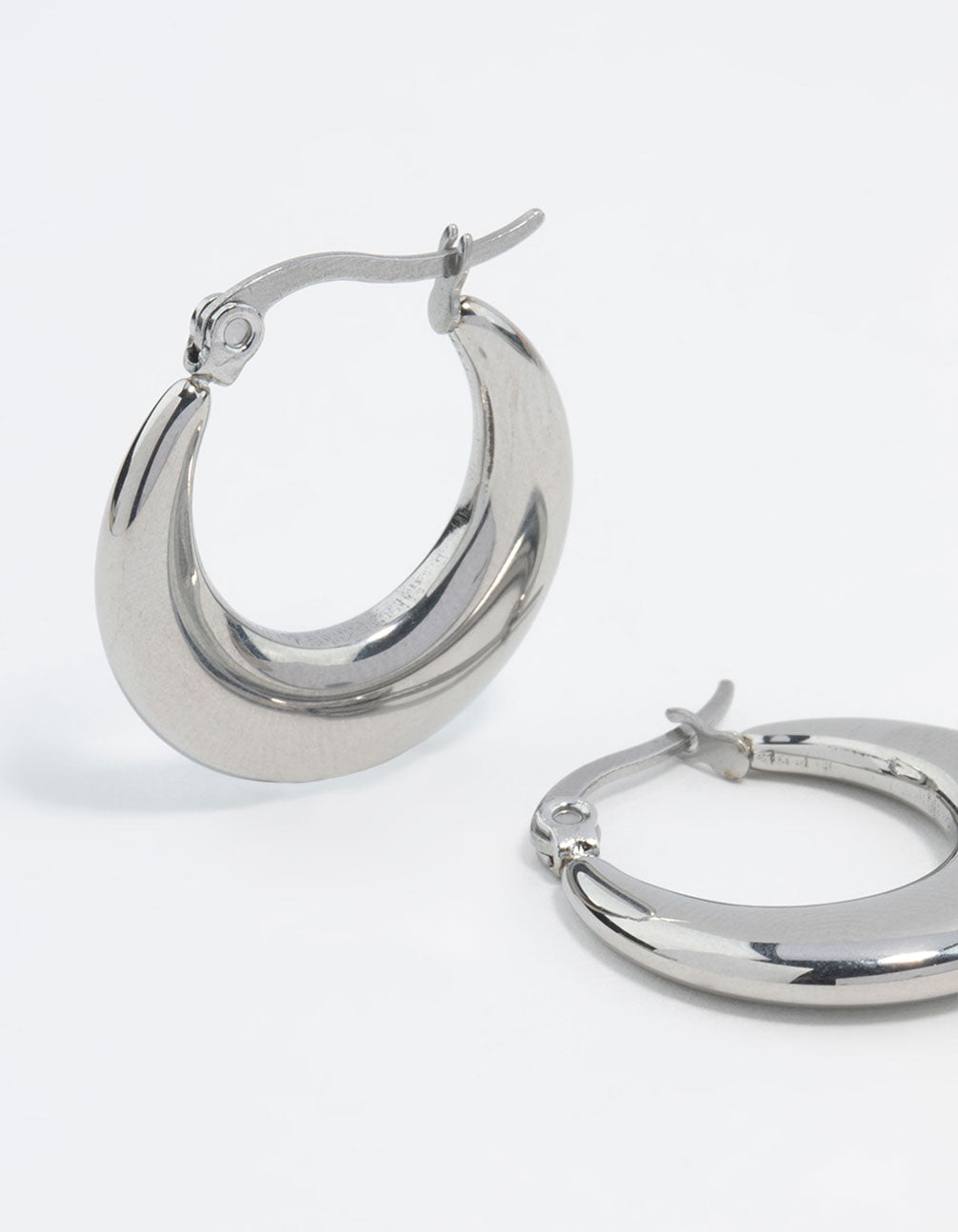 Waterproof Stainless Steel Flat Crescent Hoop Earrings