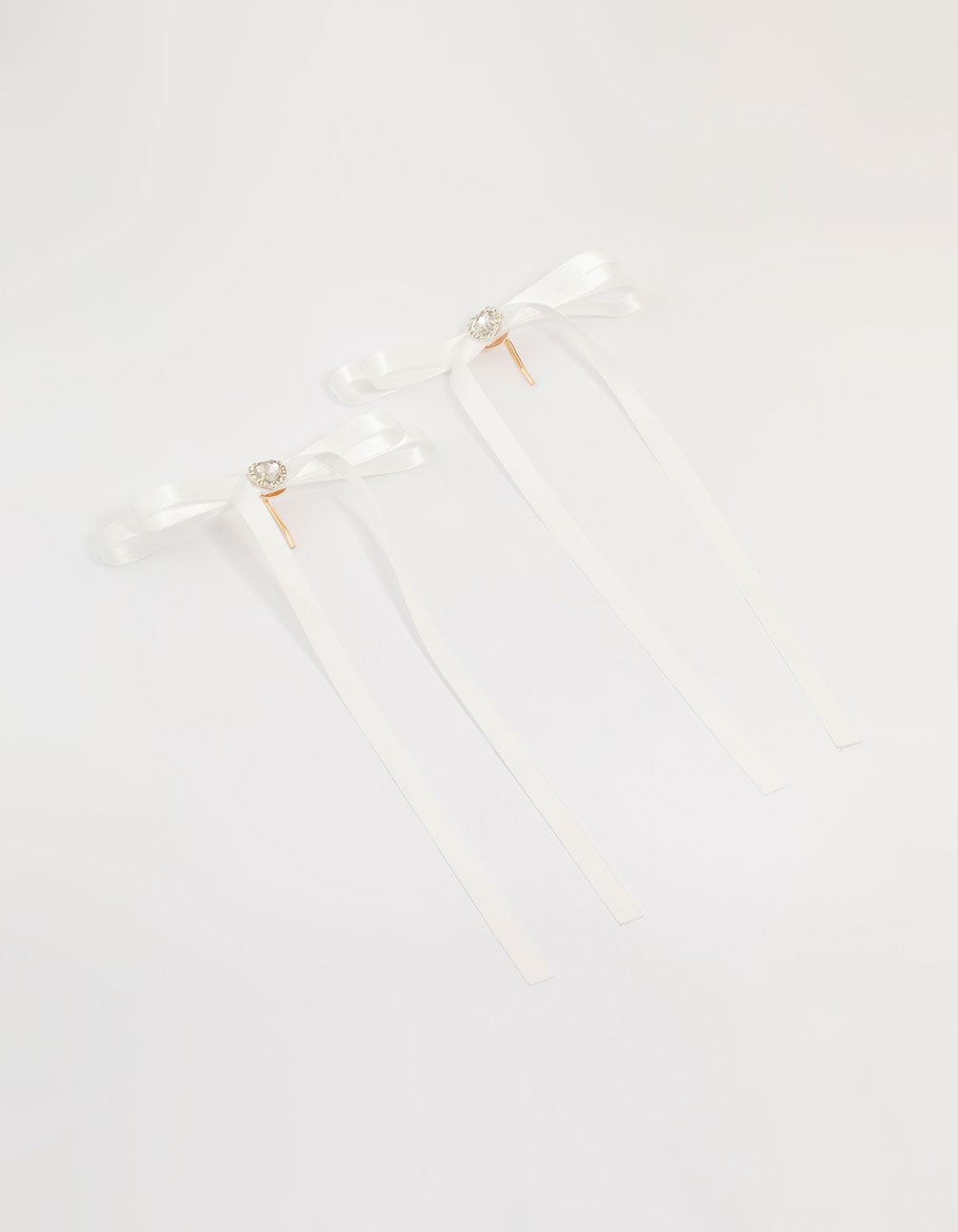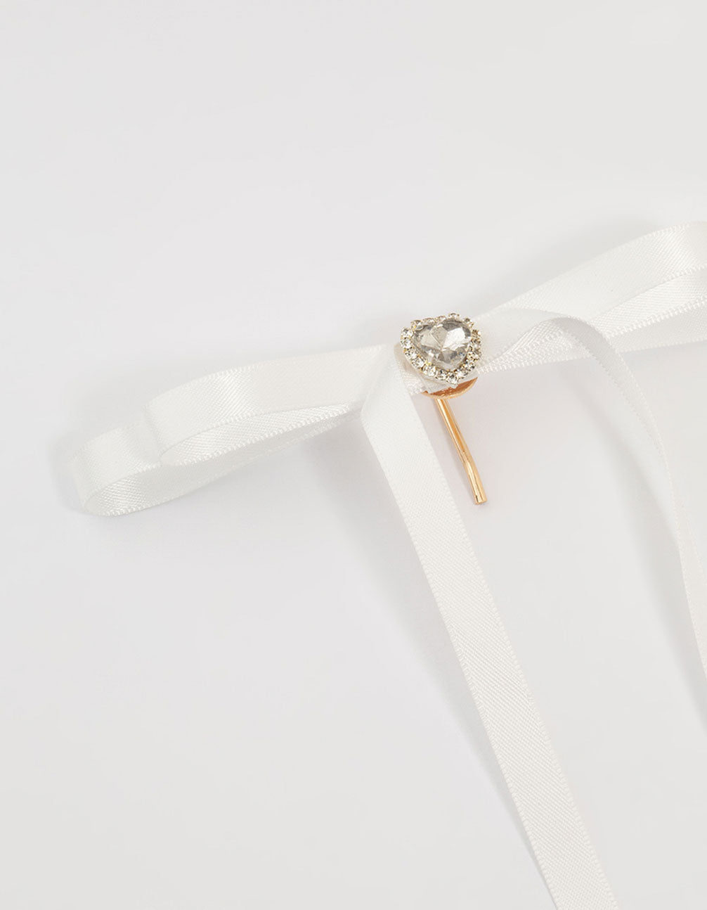White Fabric Heart Ponytail Hair Hooks 2-Pack