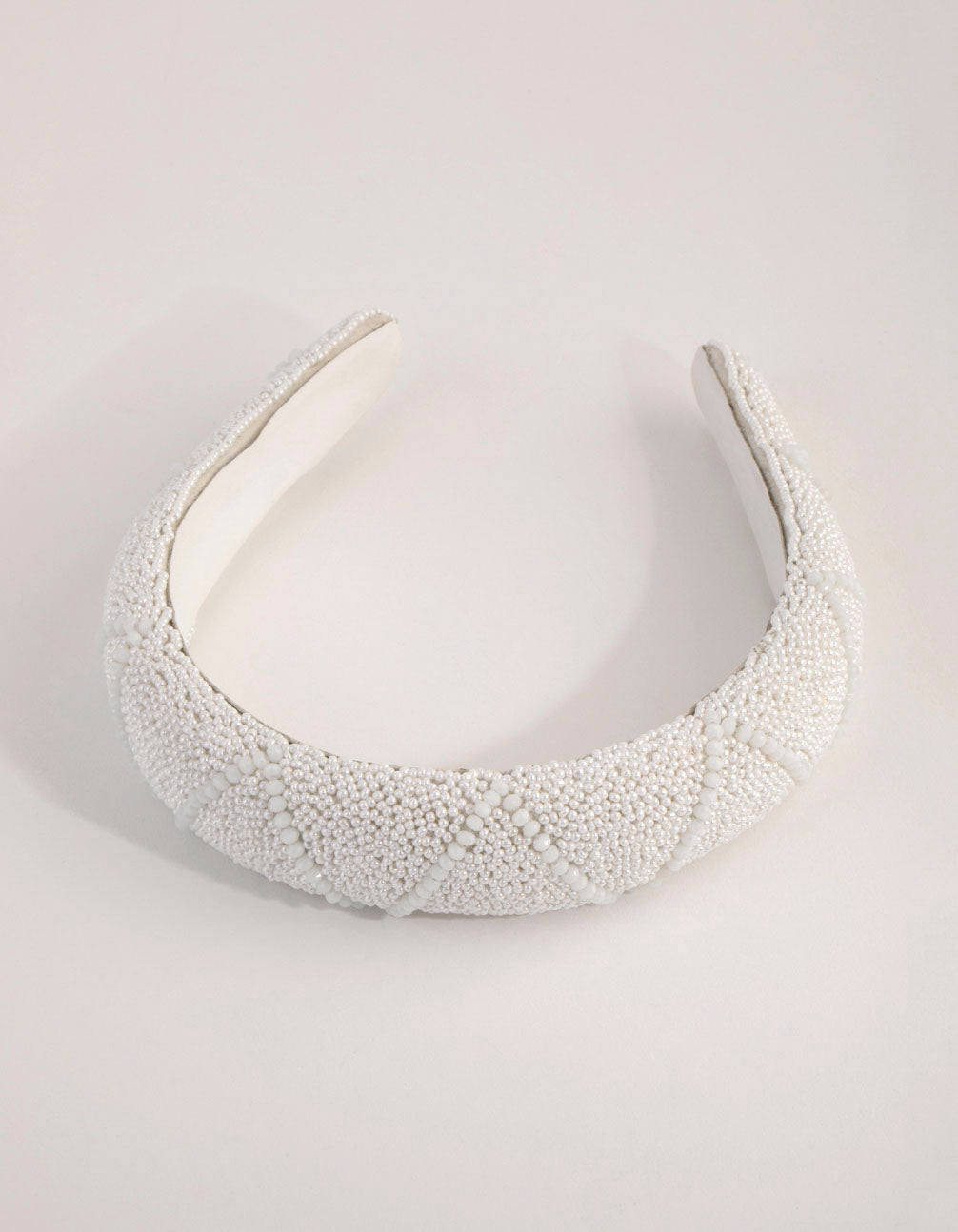 Turn heads with this White Facet Bead Detailed Headband, the ultimate hair accessory for effortless style. Featuring delicate white bead detailing, this headband adds a touch of sparkle to any outfit. Perfect for weddings, brunches, or a casual day out, it's a versatile piece that pairs beautifully with flowy dresses or even a chic blazer. Whether you're taming flyaways or adding flair to loose waves, this headband is your go-to for a polished yet playful look. Stylish and practical, it's ideal for anyone looking to elevate their hairstyle with a touch of elegance.
