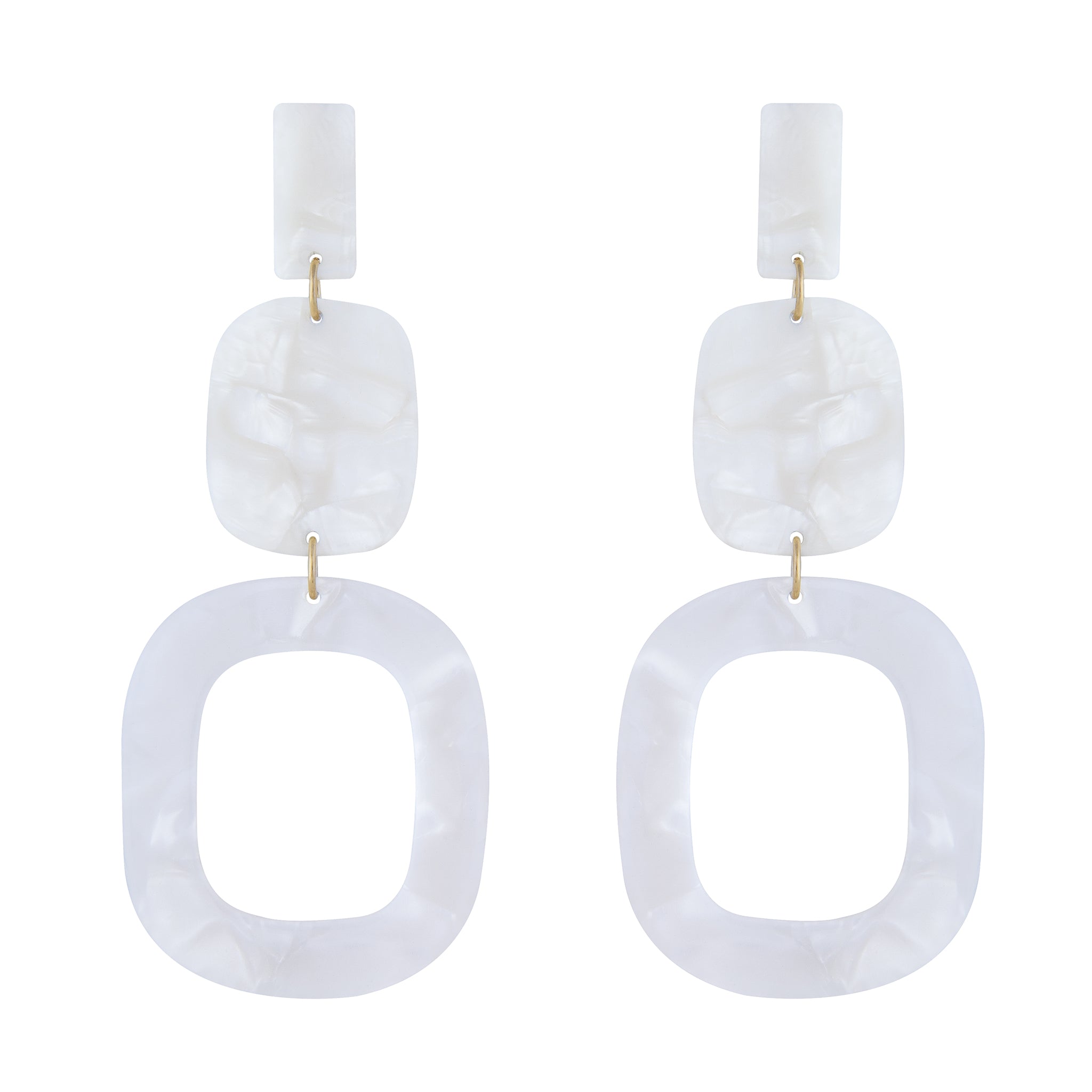 Light, bright, dramatically different. Bring a 60's POP! reference to your earring wardrobe today with these brilliantine white marble-effect drop stunners.
