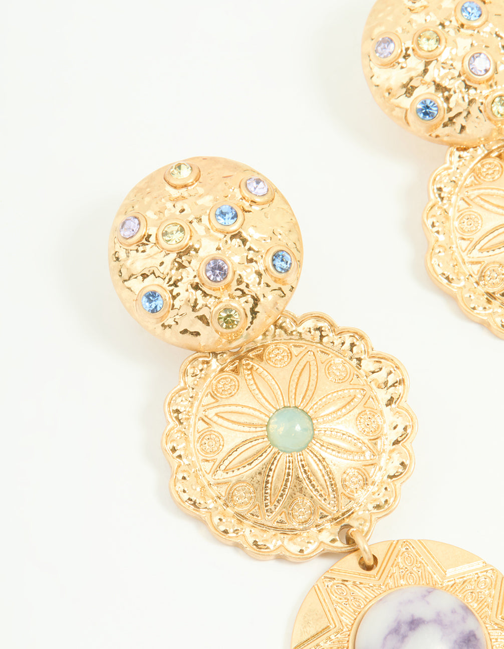 Turn heads with these Worn Gold Large Disc Drop Earrings. With their bold disc shape and luxurious worn gold finish, these drop earrings exude effortless elegance, perfect for channeling Met Gala-inspired style. Whether you're stepping out for a wedding, gala dinner, or glamorous soirée, these earrings add a touch of sophistication to any outfit. Pair them with a sleek black dress for timeless chic or a tailored jumpsuit for a modern edge. Lightweight yet striking, they're ideal for anyone who loves standout jewellery that's versatile and stylish. These earrings are a must-have for elevating your evening look and shining bright wherever you go. Pieces from our Limited Edition collection are here to make you the center of attention—they're all Met Gala-inspired and ready for your next event. Available for a limited time only.