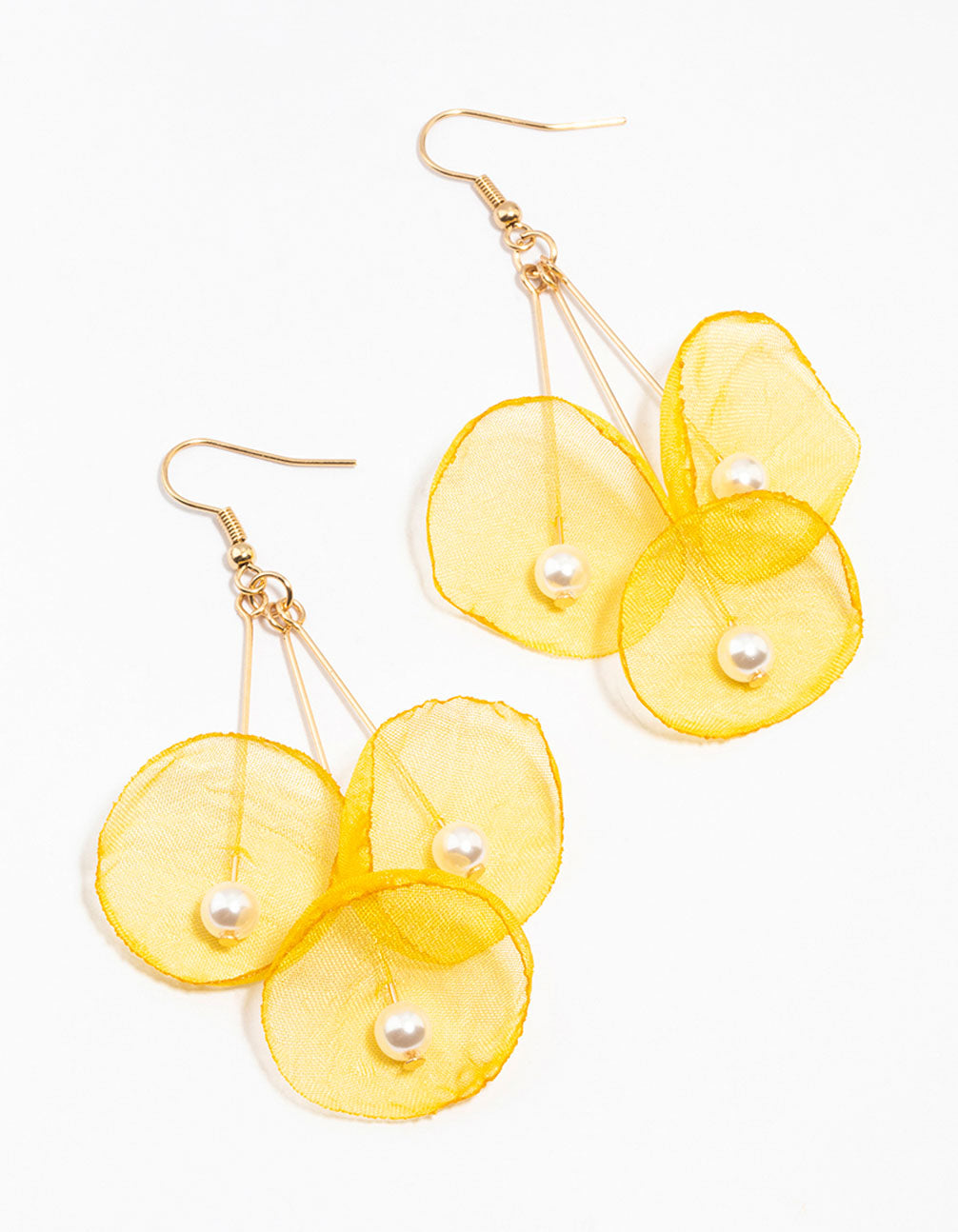 Introducing your next statement earrings, these Yellow Gold Pearl Flower Drop Earrings. Their unique floral shape and vibrant sunshine yellow colour are guaranteed to turn heads and add a touch of radiance to any ensemble.