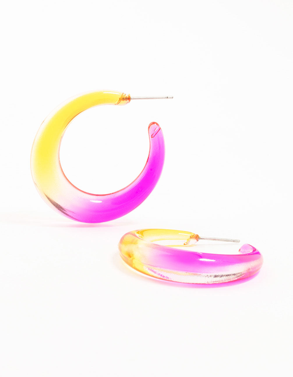 Add a splash of playful color to your style with these wide hoop earrings. Crafted in a vibrant yellow and pink acrylic, they're perfect for brightening up your boldest outfits.