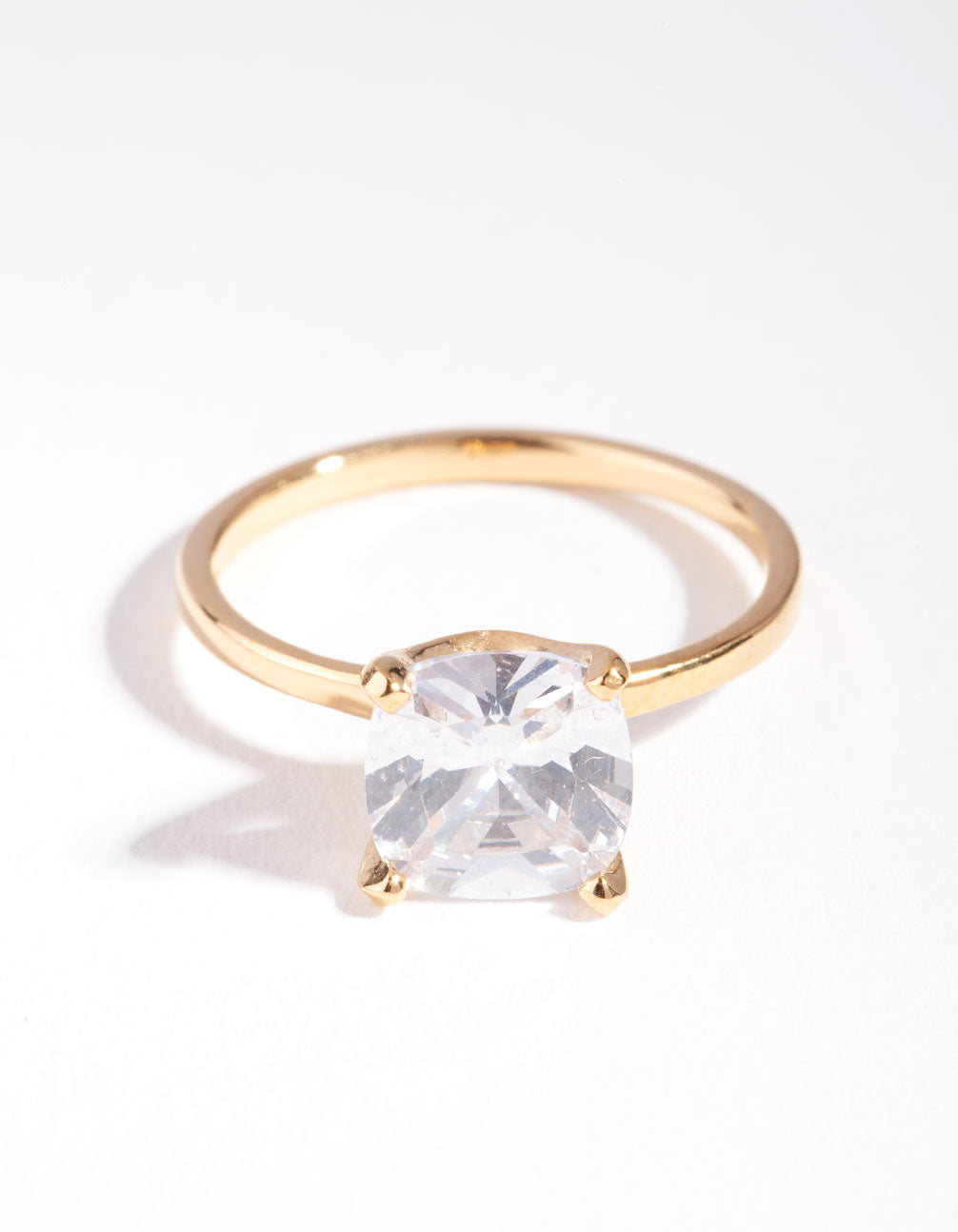 Round out your jewellery collection with gold plated sterling silver jewellery. These treasures boast a sterling silver base with premium plating and classic designs to suit your everyday outfits. This ring is perfect for stacking and features a 1.5 carat cushion design.