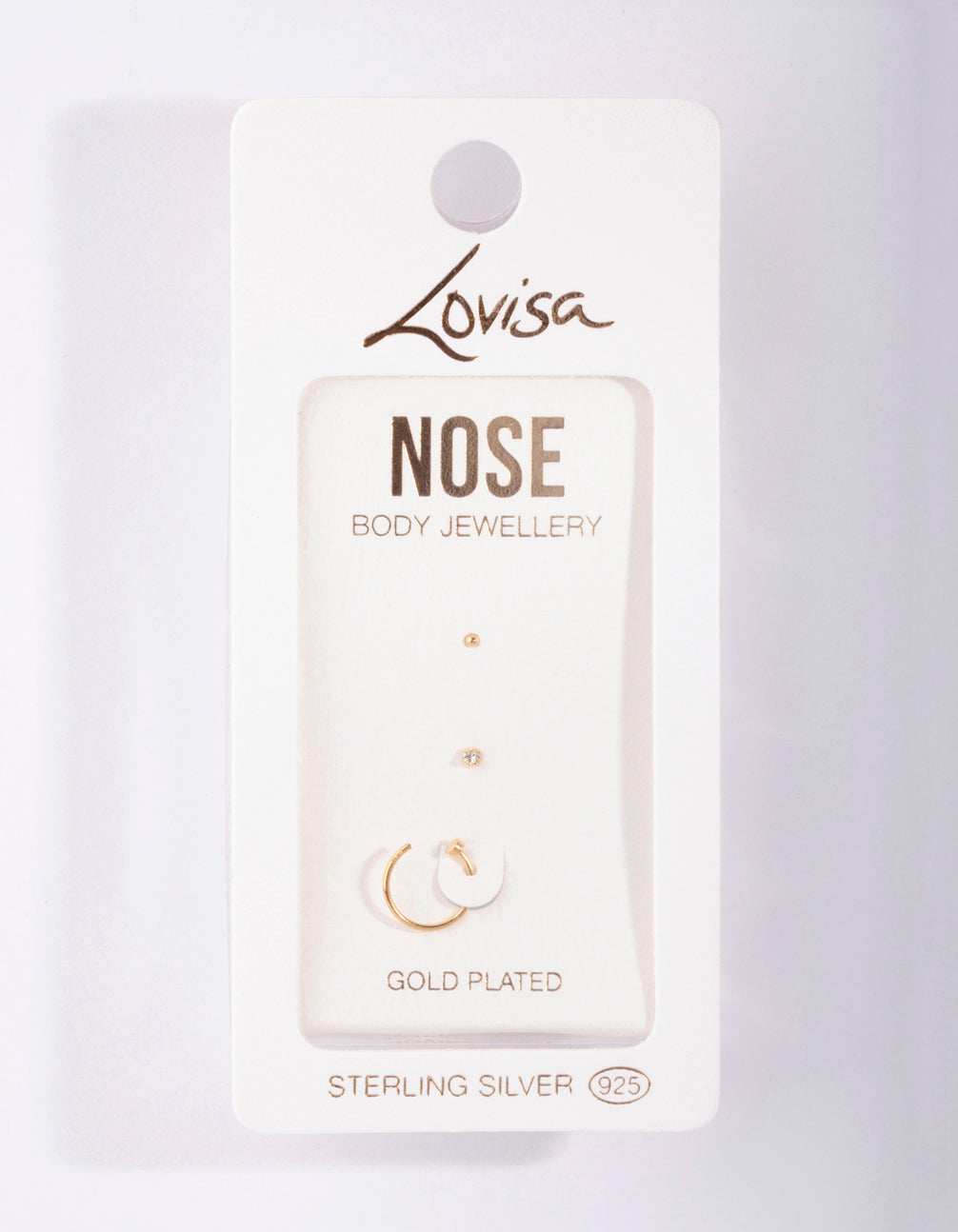 Gold Plated Sterling Silver Nose Hook Stud Pack