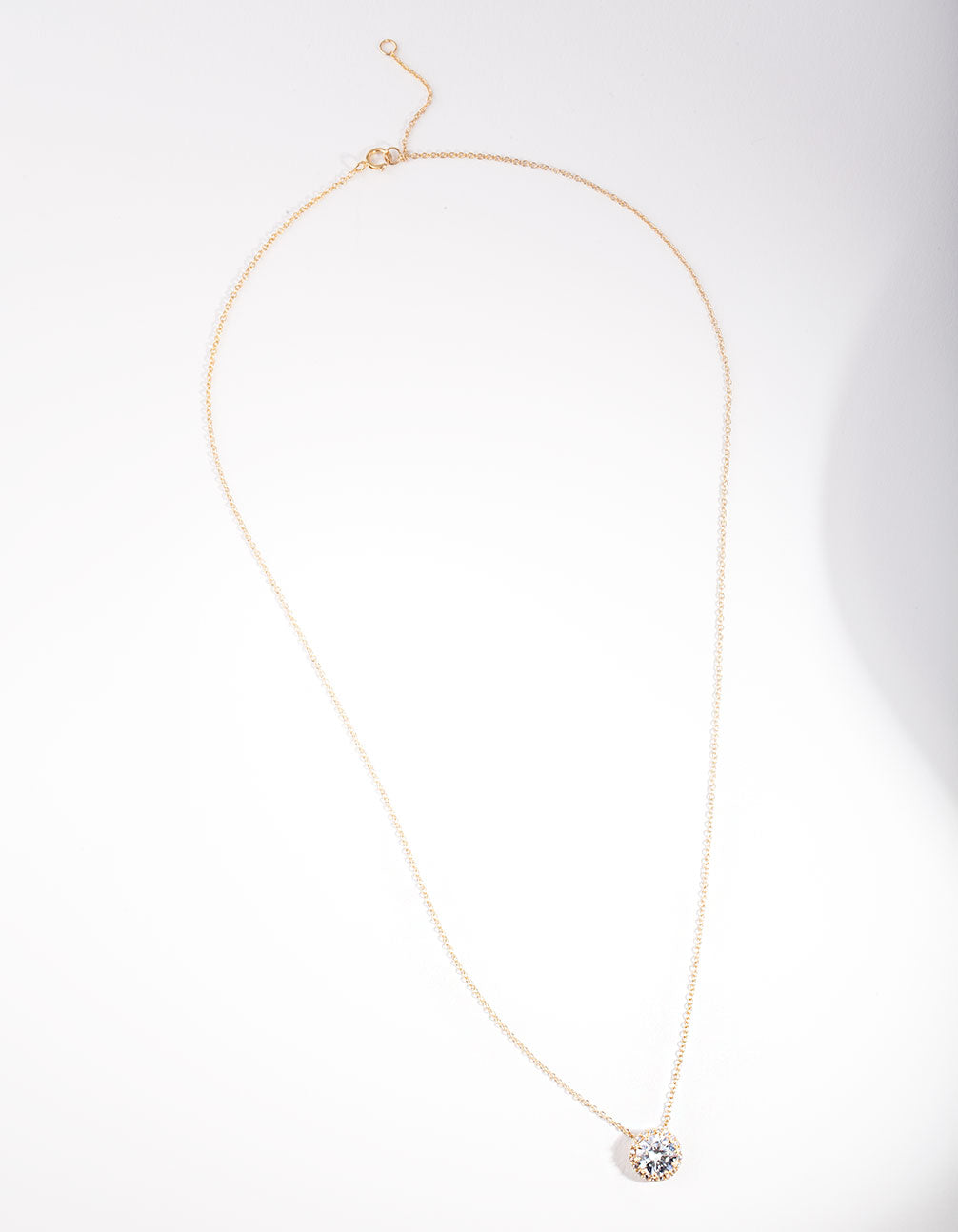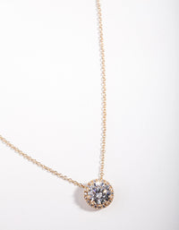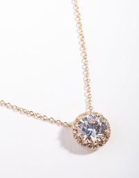 Gold Plated Sterling Silver 6mm Cubic Zirconia Halo Necklace