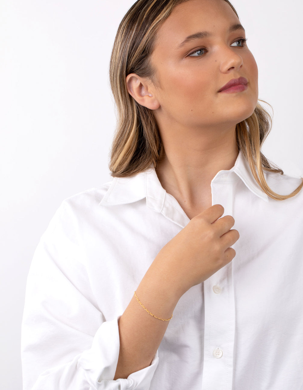 Gold plated sterling silver styles are the ultimate jewellery-box essential. Dress up your look with this classic chain anklet/bracelet.