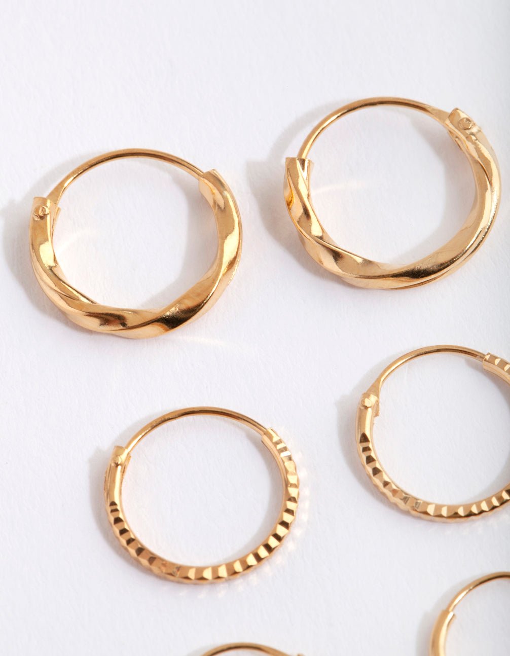 Gold Plated Sterling Silver Graduating Textured Hoop Earring Pack