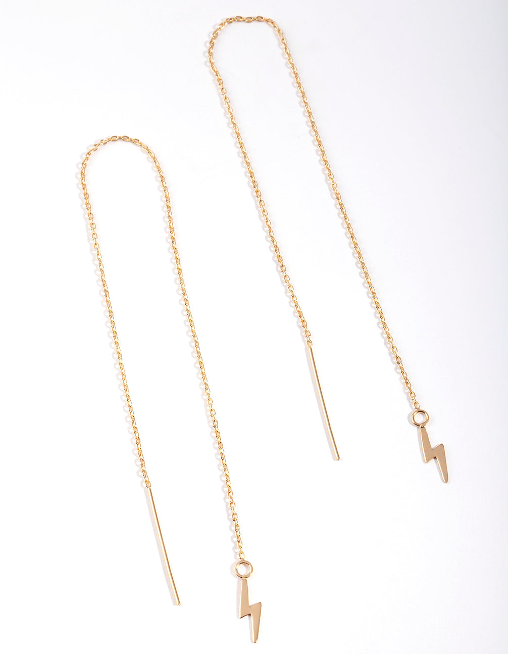 Gold plated sterling silver styles add a classic touch to your everyday looks. This pair of thread-through earrings feature a lightning motif.