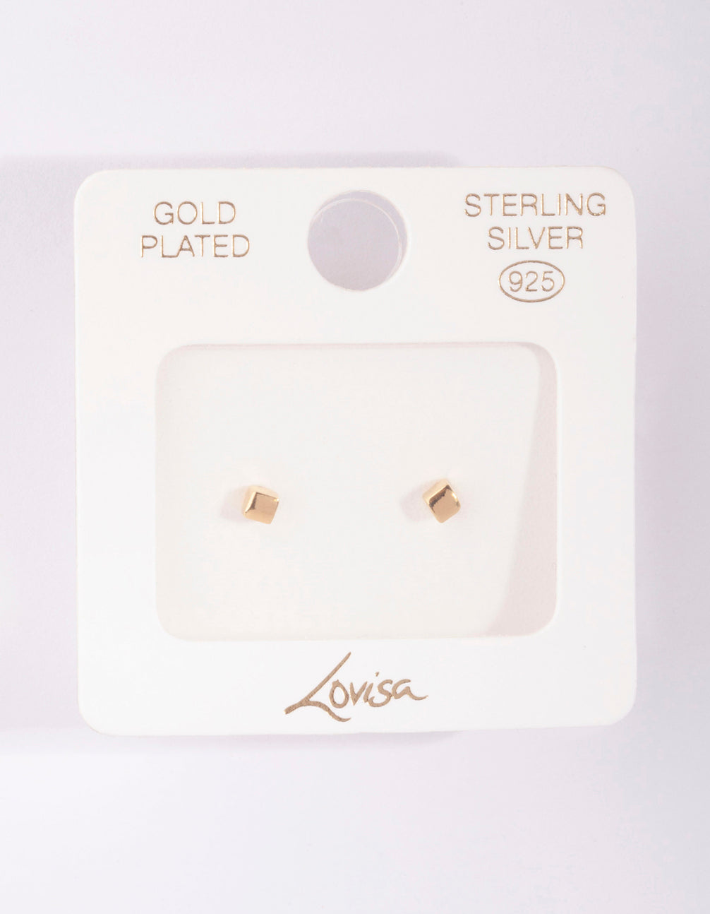 Round out your jewellery collection with gold plated sterling silver jewellery. These treasures boast a sterling silver base with premium plating and classic designs to suit your everyday outfits. This pair of mini stud earrings feature a cube shaped design and a polished finish.