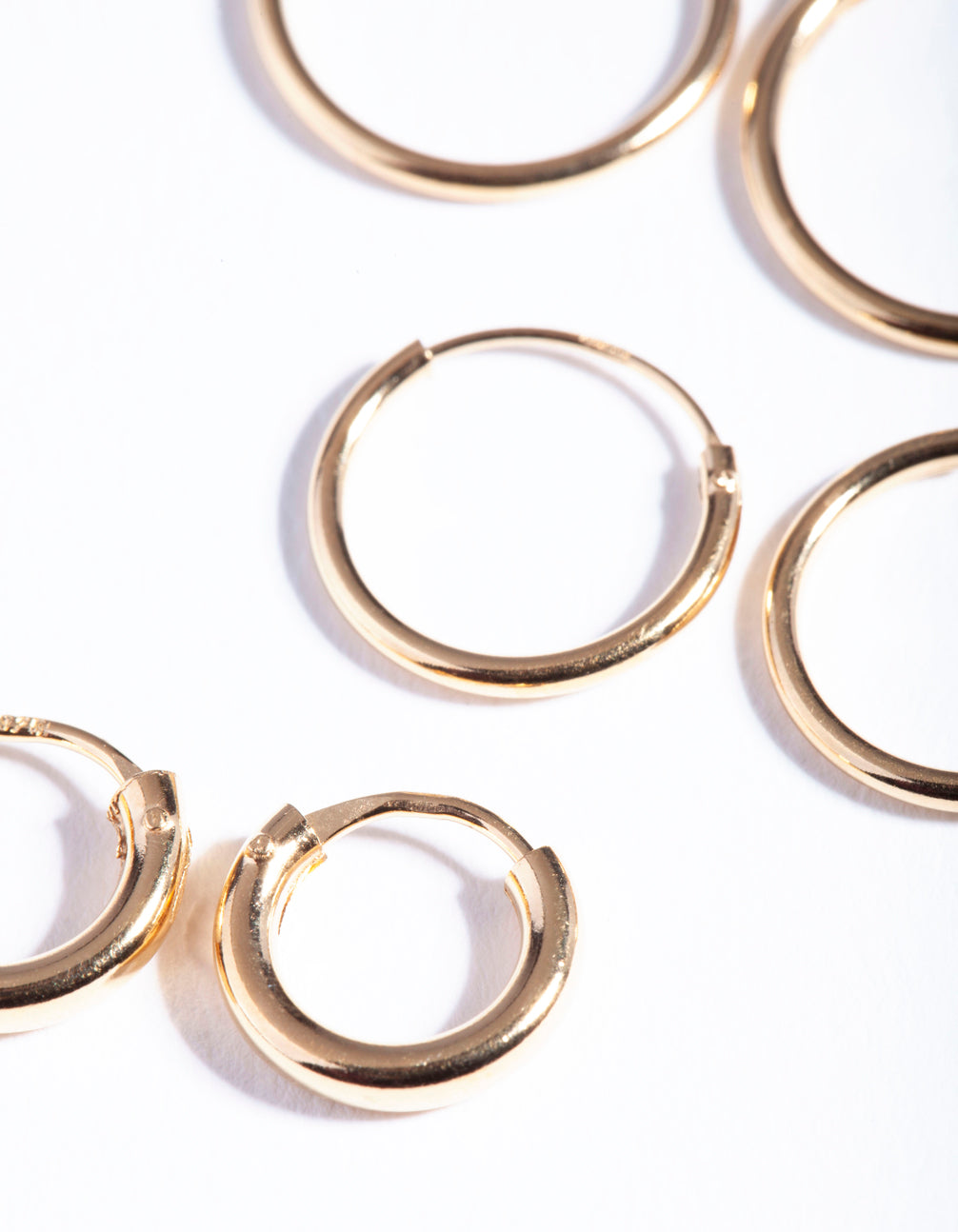 Gold plated sterling silver styles are the ultimate jewellery-box essential. Dress up your look with this pack of classic mix thick hoop earrings.