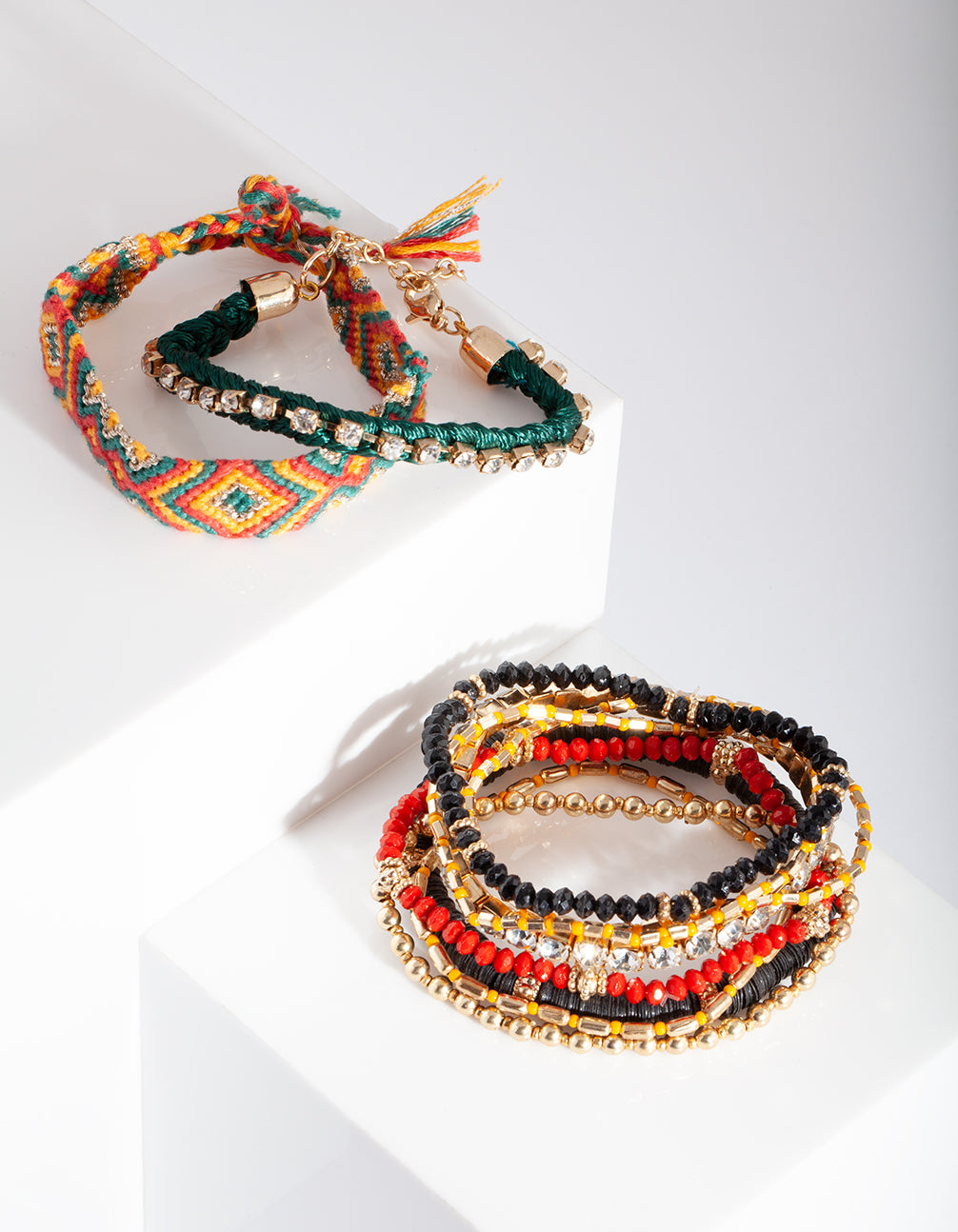 We love a bracelet stack! Mix and match styles to create your own customised look, or wear alone for a curated addition to any outfit. This pack comes with 10 multi styled bracelets.